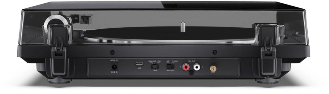 This turntable features a tinted dust cover, protecting your turntable from enviromental debris, as well as also reducing stylus noise and external airborne vibrations during playback.